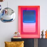 艶やかなピンクとブルーがキャンバスいっぱいに広がり、官能的でありながら清涼感を感じさせる不思議な世界観を描き出します。