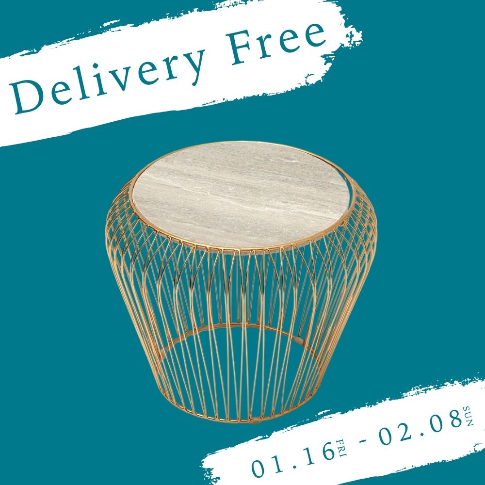 大理石の天板が高級感をグッと上げてくれるサイドテーブル。ワイヤフレームで抜け感を演出し、空間を広く見せる嬉しい効果があります。流れるような繊細なワイヤーはどの角度から見ても美しく、エレガントな印象を与えてくれます。グレーマーブル×ゴールドのメリハリがある贅沢な組み合わせに、誰もが虜になること間違いなし!様々な空間に置くことができるコンパクトサイズで、フレキシブルに使っていただけます。