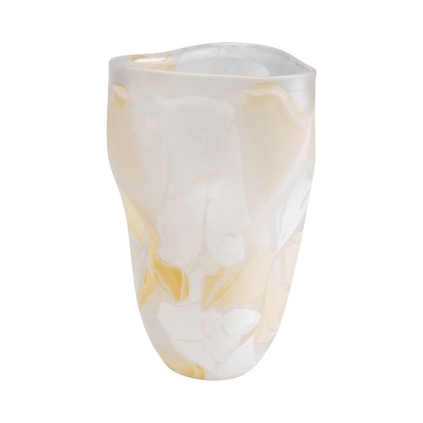 やわらかなベージュとホワイトが溶け合う、美しいカラーガラス。有機的なラインが美しいアートのようなフォルムは一点一点がハンドメイドのユニークピースならでは。