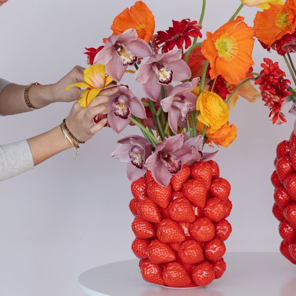 空間にフレッシュな彩りを添える、ストロベリーモチーフのベース。