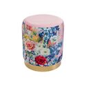 美しいお花の柄と生地の質感がすごく好きです。足元のゴールドもピンクとの相性がとても良くて、クラシックな雰囲気にもモダンにもポップにも溶け込むと思います。うちの他のスツールたちが大きめばかりで、この子はいい感じに小ぶりでまさに欲しかったサイズ感なので重宝しそうです。プレゼントにも喜ばれそう。